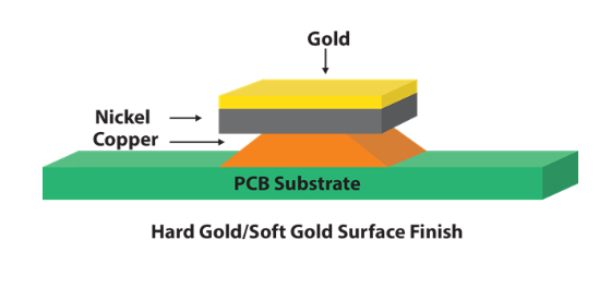 硬金:純度約 99.6%,為金 - 鈷 / 鎳 / 鐵合金,常用于金手指、PCB 觸點等高磨損區(qū)域。其厚度依據(jù)應(yīng)用場景而定,如 IPC 1/2 類應(yīng)用建議金層 25μin、鎳層 100μin,3 類應(yīng)用建議金層 50μin、鎳層 100μin;