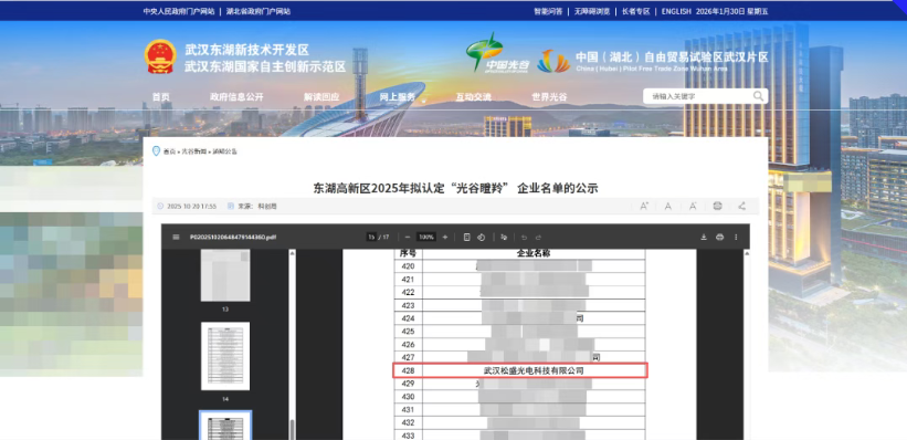" />近日武漢東湖高新區(qū)開(kāi)展了2025年度“光谷瞪羚”企業(yè)認(rèn)定工作。武漢松盛光電科技有限公司憑借深厚的技術(shù)實(shí)力及行業(yè)影響力,成功入選。
